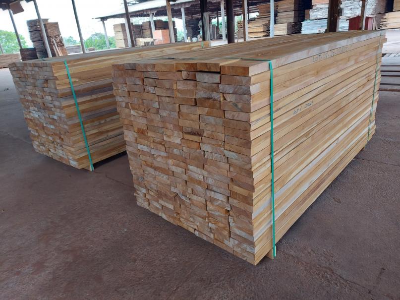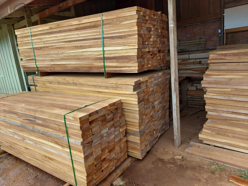Pranchas para fabricação de móveis, ripas para convés de barcos, entre outros. Madeira de reflorestamentos sustentáveis cultivados no estado de Rondônia e Mato Grosso.